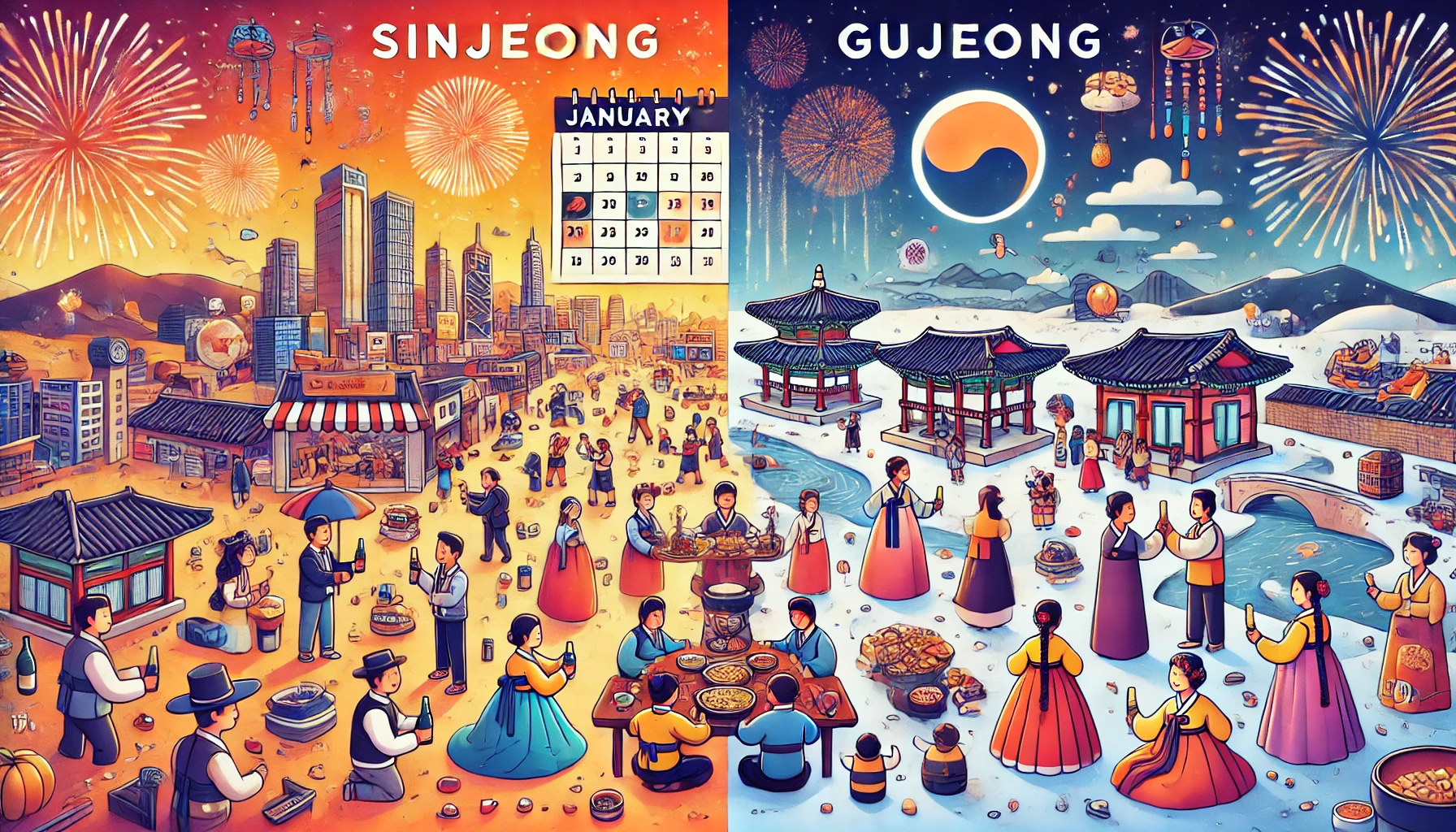 | 구분 | 신정 (양력 새해) | 구정 (음력 설날) |